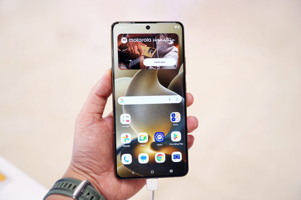 motorola signature kết hợp giữa thiết kế tinh tế và sự bền bỉ vượt thời gian, trang bị kính cường lực Corning Gorilla Glass Victus 2, chứng nhận độ bền chuẩn quân đội MLT-STD 810H, cùng khả năng kháng nước bụi IP68/IP69. Dù sở hữu thân máy mỏng, thiết bị vẫn sở hữu viên pin có dung lượng lớn – silicon carbon 5200mAh cho thời lượng sử dụng lên đến 52 giờ, hỗ trợ sạc nhanh TurboPower 90W và sạc không dây 50W.