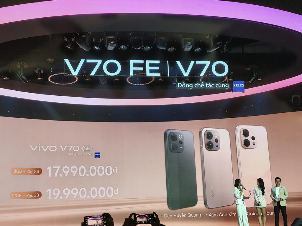 “Ra mắt vivo V70 5G và vivo V70 FE 5G mang đến trải nghiệm vượt trội dành cho người dùng với diện mạo thời thượng, khả năng nhiếp ảnh ấn tượng cùng hiệu năng tổng thể mạnh mẽ”, bà Nguyễn Thu Huyền – đại diện vivo Việt Nam chia sẻ. “Với thiết kế tinh xảo và bền bỉ, hệ điều hành OriginOS 6 mượt mà, thông minh hơn cùng những nâng cấp camera chuyên nghiệp, bộ đôi sản phẩm là những thiết bị thời thượng và đáng tin cậy trong mọi tình huống sử dụng.”